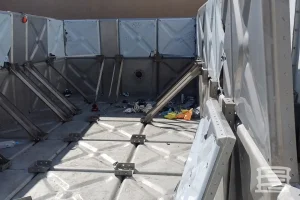 - Current and potential leakage areas, including weakened seams where panels are joined.